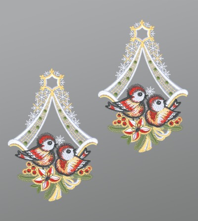 Fensterbild aus Plauener Spitze® - 2er Set Rudolph und Santa #1W mehrfarbig