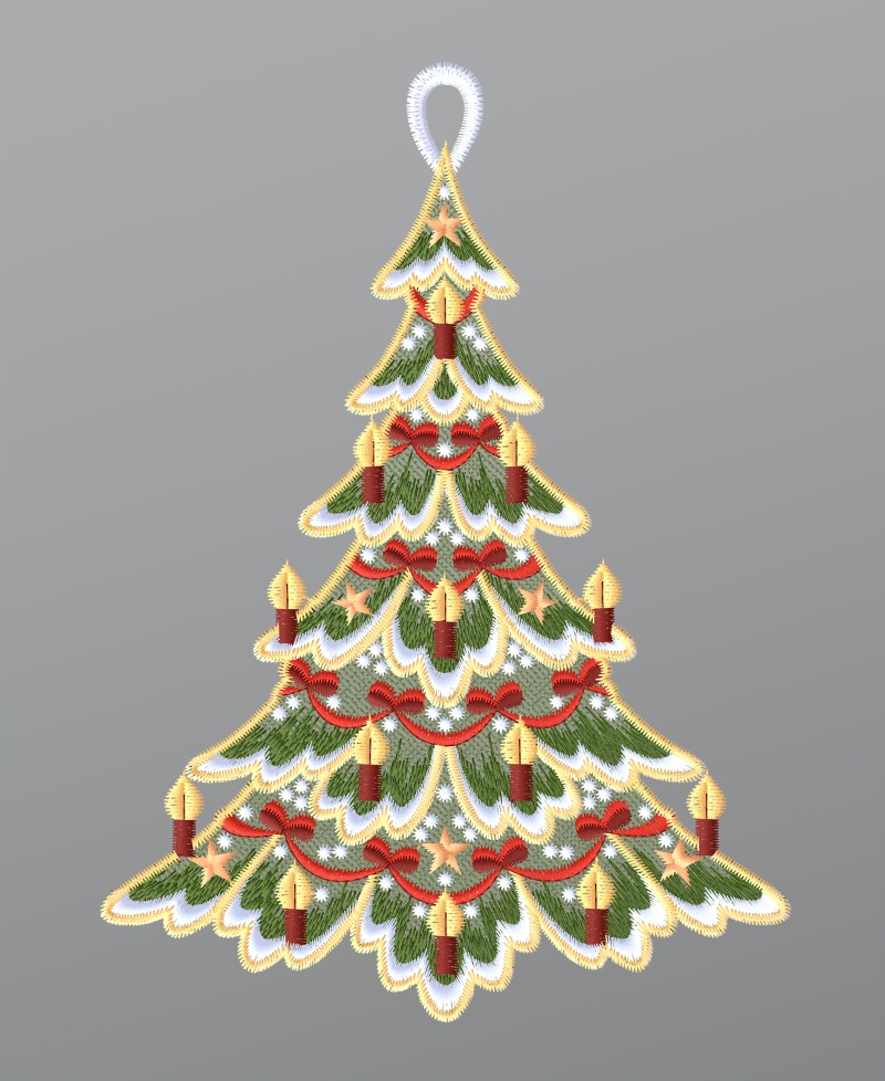 Fensterbild aus Plauener Spitze® - Festlich geschmückter Tannenbaum #1W mehrfarbig