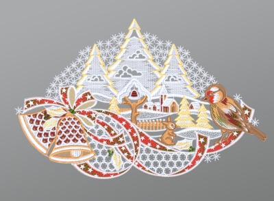25,95 EURFensterbild aus Plauener Spitze® - Winterlandschaft mit Vogel und Glocken #1W mehrfarbig
