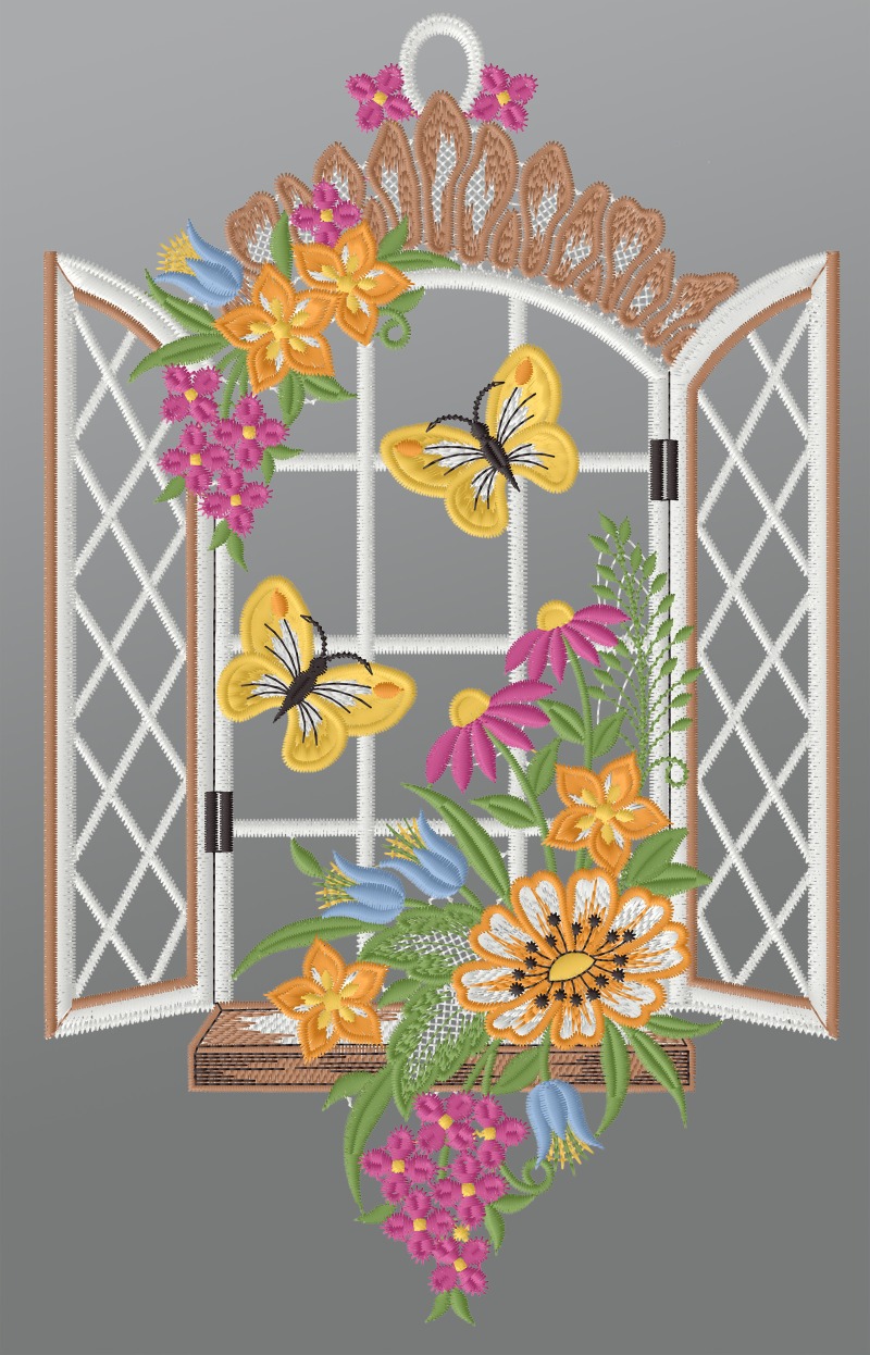 Fensterbild aus Plauener Spitze® - Frühlingsblick #1W mehrfarbig