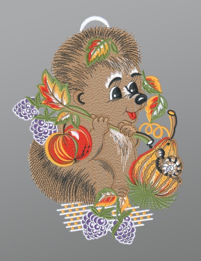 21,95 EURFensterbild aus Plauener Spitze® - Igel mit Brombeeren und Schnecke #1W mehrfarbig