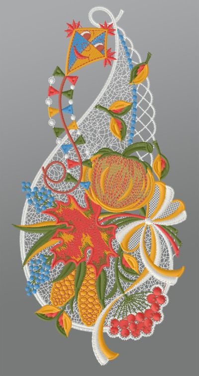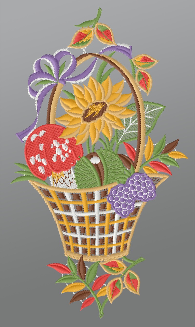 Fensterbild aus Plauener Spitze® - Herbstkörbchen #1W mehrfarbig