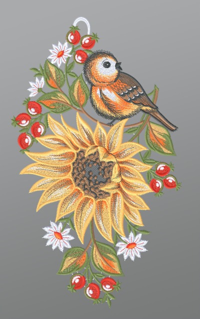20,95 EURFensterbild aus Plauener Spitze® - Sonnenblume mit Vögelchen #1W mehrfarbig