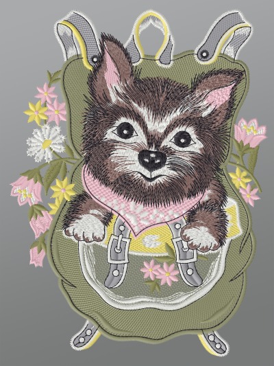 21,95 EURFensterbild aus Plauener Spitze® - Hündchen im Rucksack #1W mehrfarbig