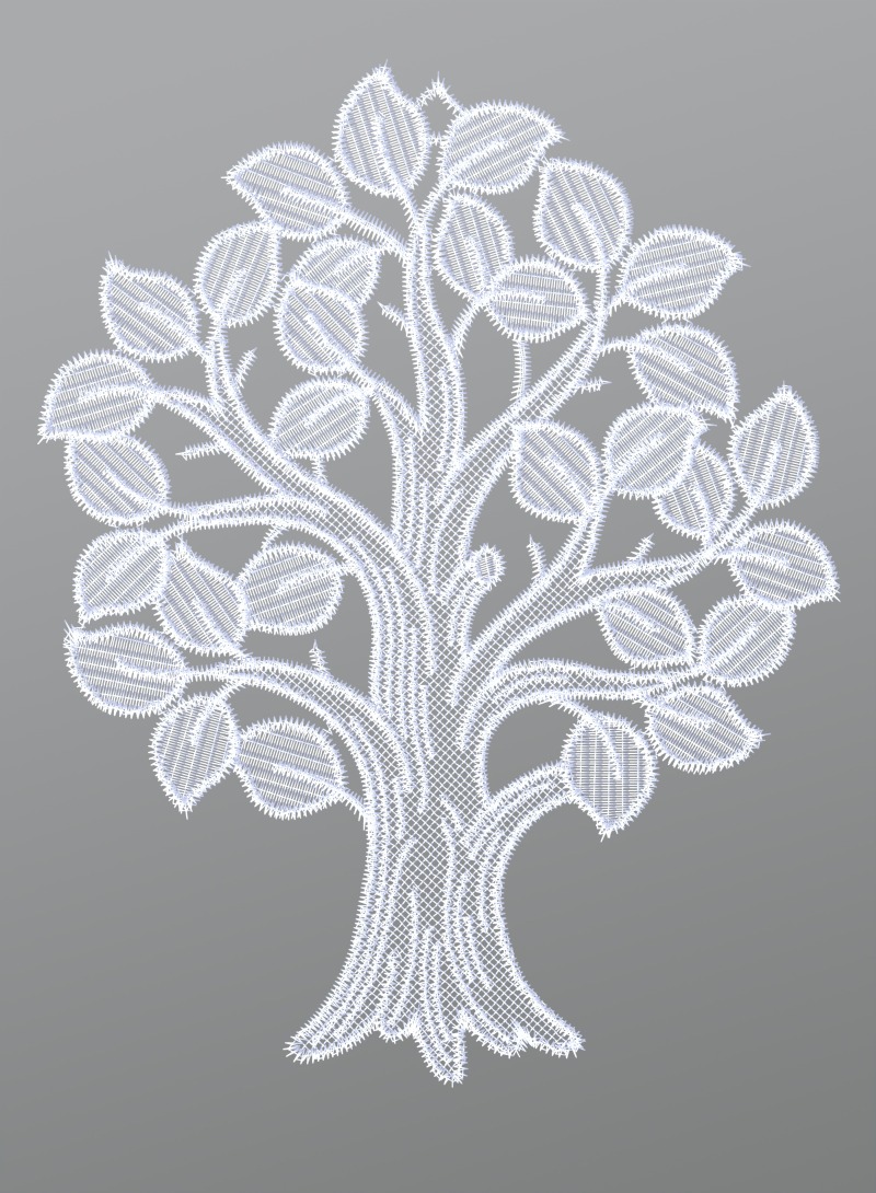 Fensterbild aus Plauener Spitze® - Laubbaum #1W in Weiß