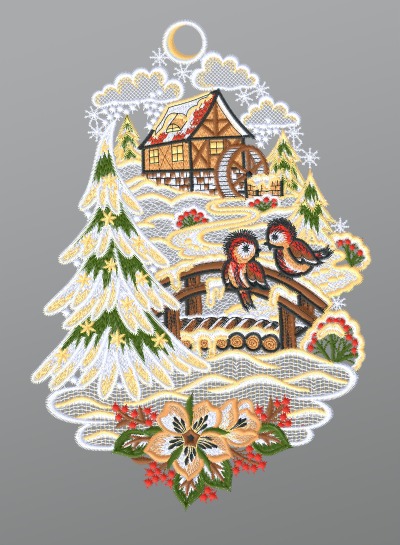 21,95 EURFensterbild aus Plauener Spitze® - Wassermühle in Winterlandschaft #1W mehrfarbig