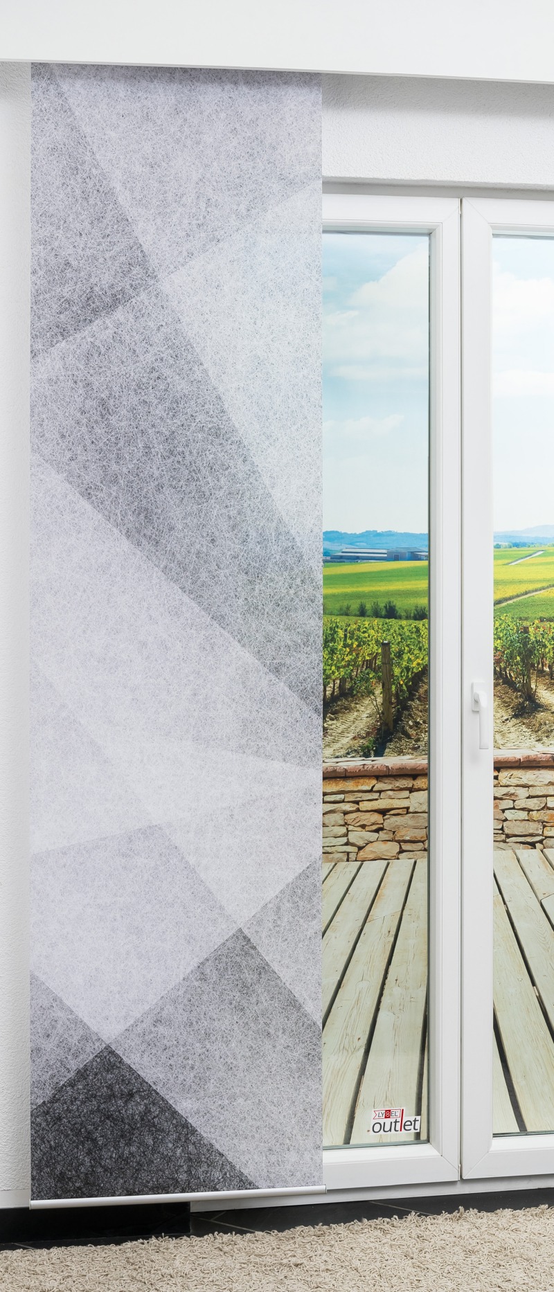 - Eine Schiebegardine aus transparentem Stoff