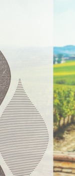 In dem dunklen Graubraun schafft es diese weiße Schiebegardine ein bekanntes Design zeitgemäß zu interpretieren und mit gemütlicher und warmer Aura gekonnt zu vereinen. Die Rauten mit abwechselnder Gestaltung sorgen für Lebendigkeit und Dynamik; dunkle Holzmöbel und silbern glänzende Accessoires greifen die moderne Eleganz wieder auf.