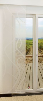 Die weiße Schiebegardine wird von den sanften Schwüngen des Linienmusters getragen. Es ergibt sich ein freundlicher und entspannter Look für jeden Raum. Die Leichtigkeit des Behangs wird durch dessen Transparenz unterstrichen. Das Tageslicht kann beinahe ungebremst in den Raum vordringen.