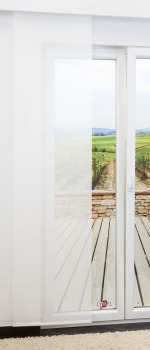 - Eine Schiebegardine aus transparentem Stoff