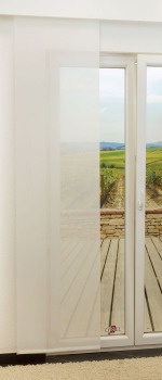 Der zarte weiße Flächenvorhang ist offen für die vielfältigsten Kombinationsmöglichkeiten. Zarte Pastellfarben können die Leichtigkeit des Fensterbildes unterstützen. Mit warmen Brauntönen gelangt mehr Wohnlichkeit in den Raum. Nuancen von Grau sorgen für Eleganz. Wenn Sie es farbenfroher und ausdrucksstärker mögen, sind kräftige Beerentöne, Flieder oder Aubergine eine gute Wahl.