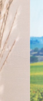 • Eine Schiebegardine aus lichtdurchlässigem Stoff