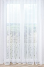 Angenehme Leichtigkeit geht von dieser weißen Schiebegardine aus. Sie sind vollkommen frei in den Kombinationsmöglichkeiten. Mit Grau, Braun oder Beige können Sie den dezenten Ausdruck unterstreichen und die leichte Leinenstruktur deutlicher hervorbringen. Fröhliche Pastellfarben lockern das Ambiente auf.