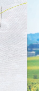 - Eine Schiebegardine aus halbtransparentem Stoff
