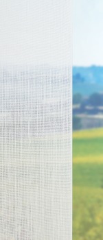 Bei diesem Behang ist das Muster in Weiß ausgeführt und hebt sich dezent vom Hintergrund ab. Das Motiv hält sich zurück und es bieten sich die verschiedensten Gestaltungsmöglichkeiten an. Die Kombination mit warmen, satten Farben lockt die Schiebegardine aus der Reserve. Graue Stoffe unterstreichen den zurückhaltenden Gesamteindruck, sorgen ebenso wie dunkle Blautöne, Violett und Anthrazit für ein modernes Ambiente.