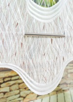 Charakteristisches Merkmal dieser Schiebegardine aus Plauener Spitze® sind ihre kühn geschwungenen Rapporte und der damit einhergehende wellenartige untere Abschluss. Die Übergänge bestehen aus filigranen, netzartigen Stickereien, welche die Transparenz des Polyesters unterstützen und für viel Helligkeit im Raum sorgen. Der untere Saum der Rapporte wird durch geschwungene Linien gebildet, die mit den senkrechten Streifen an den Seiten eine harmonischen Einheit bilden. Das Muster ist zentral in der Mitte der Gardine platziert, die Seiten sind eher schlicht gehalten, dennoch ansprechend gesäumt. Die Transparenz des Gewebes kann einfallende Sonne leicht dimmen, bietet ansonsten aber ein hübsches Spiel von Licht und Schatten. Da der Behang einen Tunneldurchzug besitzt, ist die Befestigung am Fenster ein Kinderspiel. Oberhalb des unteren Saums haben Sie zusätzlich die Möglichkeit eine Zierstange einzusetzen. Diese kann als Zubehör bei uns im Shop bestellt werden. Da es die Rapportware in verschiedenen Höhen gibt und der Behang auch individuell gekürzt werden kann, sind Ihrer Kreativität am Fenster keine Grenzen gesetzt. Schonend waschen können Sie ihn bei 30°C in der Maschine.