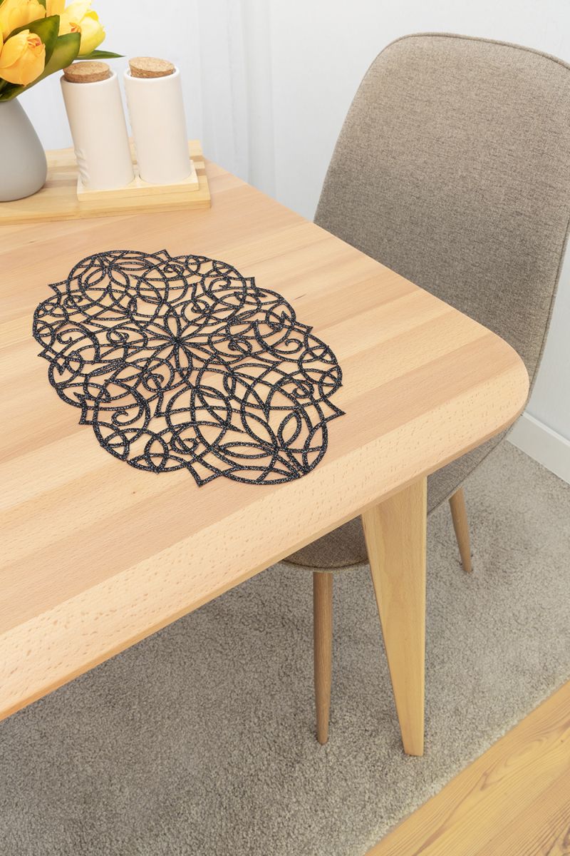 Plauener Spitze® - exklusive Schiebegardine Mandubia #1W in Schwarz