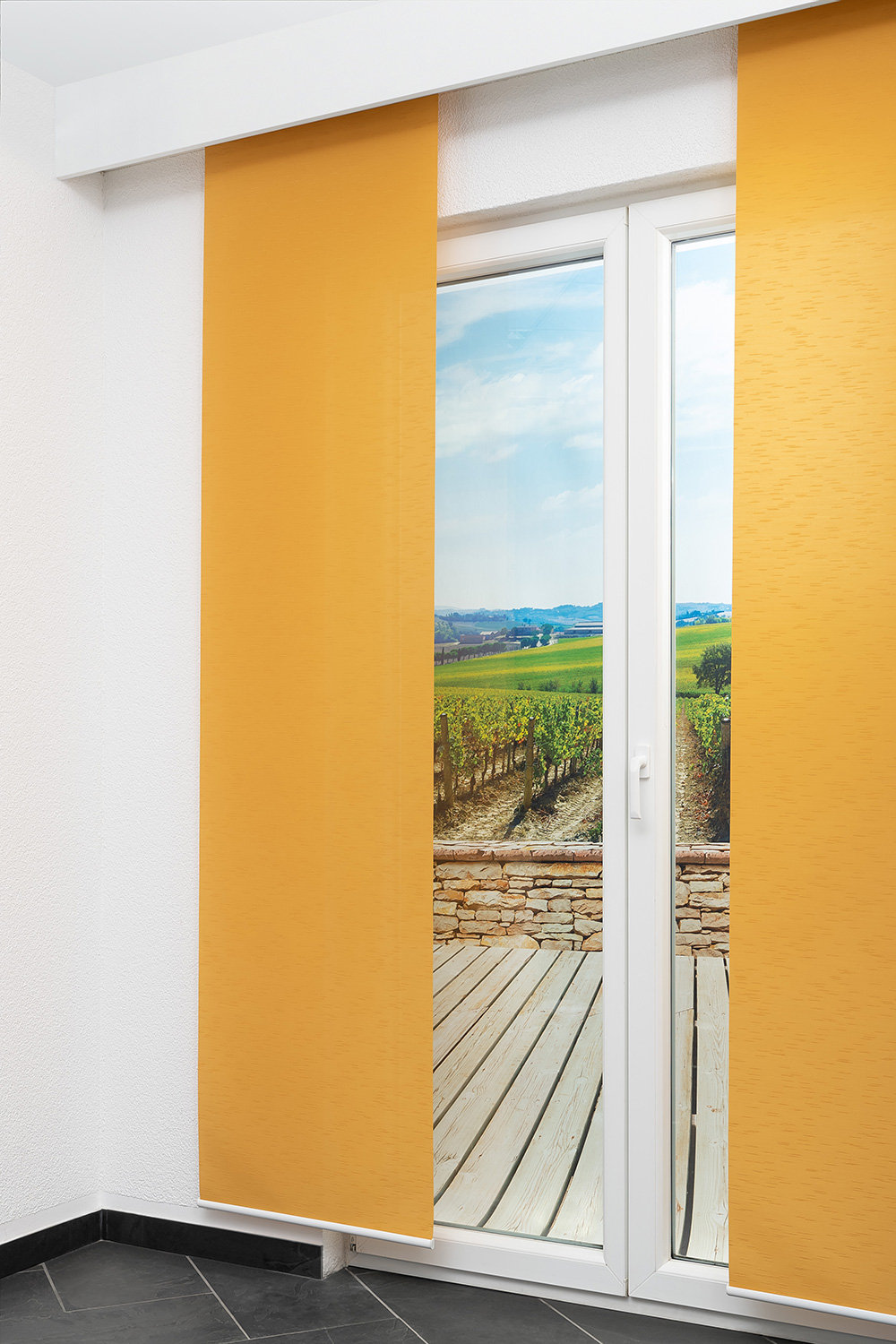 Eine ebenso geschmackvolle wie funktionelle Fenstergestaltung gelingt mit diesem halbtransparenten Flächenvorhangstoff. Er ist blickdicht und lichtdurchlässig und in verschiedenen kräftigen Trendfarben erhältlich. Das Tageslicht wird je nach Farbauswahl gefiltert, in dunkleren Farben eignet sich der Behang auch für den Bildschirm-Blendschutz. Der Stoff entspricht dem Ökotex-Standard 100 und ist auch für Feuchträume geeignet.