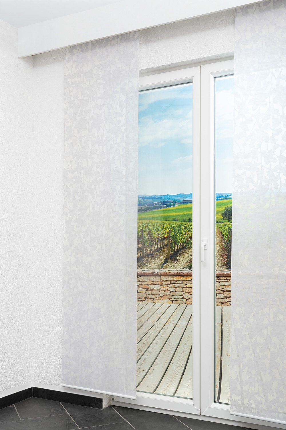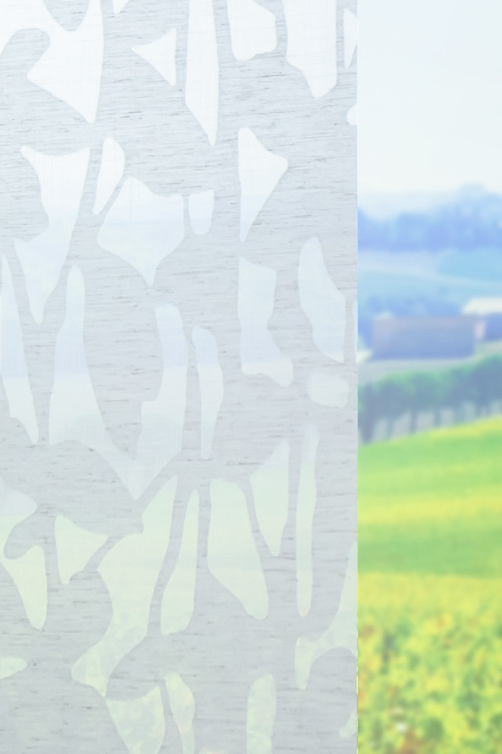 Auch wenn es hier eher zurückhaltend wirkt sind Blumenmuster wahre Klassiker und in ihrer Vielfalt kaum zu überbieten. So vermitteln sie fast unmittelbar ein Gefühl von Leichtigkeit, von Frische und Lebendigkeit. Das florale Design umspielt den transparenten und luftigen Stoff, der durch die zarten Farben Wohnlichkeit und Gemütlichkeit mit sich bringt. In Verbindung mit Holz, vielen Grünpflanzen und weiterem Blumenschmuck unterstreichen Sie das florale und frühlingshafte Design des Flächenvorhangs und verleihen dem Raum ein harmonisches Ambiente. Das ästhetisch schöne Ensemble kann durch die Kombination mit weißen, cremefarbenen oder braunen Stoffen noch unterstrichen werden. Da es sich um ein feuchtraumgeeignetes Gewebe handelt, kann dieses Modell auch in Küche oder Badezimmer seinen Platz finden.