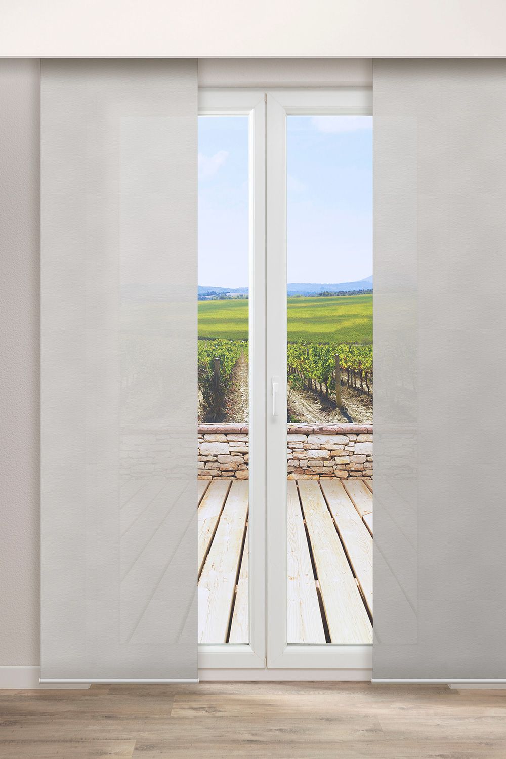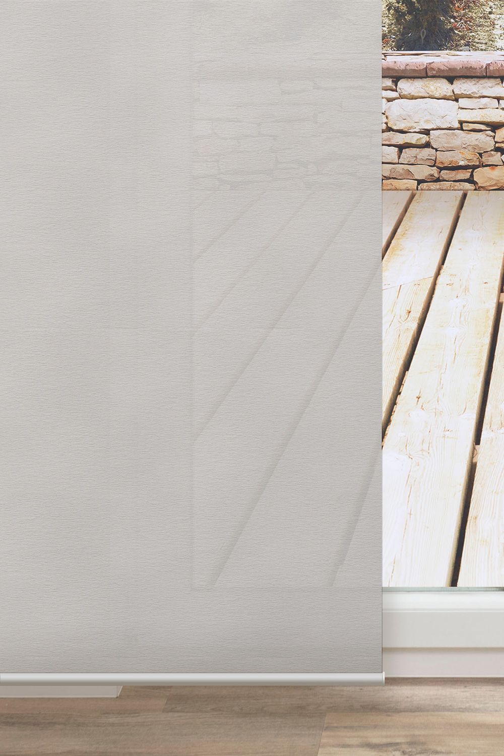 Diese individuell angefertigte Schiebegardine, welche mit ihrem leicht glänzenden Gewebe Eleganz an Ihre Glasfronten bringt, besticht durch eine robuste Textur und die ungleichmäßigen, an Chenille erinnernden Verdickungen im Garn. Die Halbtransparenz des Stoffes bietet tagsüber effektiven Schutz vor neugierigen Blicken. Auch in den Abendstunden ermöglicht er ein gewisses Maß an Privatheit, wobei im Schein künstlicher Beleuchtung Schatten und Umrisse sichtbar bleiben. Der Flächenvorhang ist außerdem resistent gegenüber Nässe und hohe Luftfeuchtigkeit und auf Schadstofffreiheit geprüft. Die Reinigung des Polyestergewebes gestaltet sich durch feuchtes Abwischen als besonders bequem.