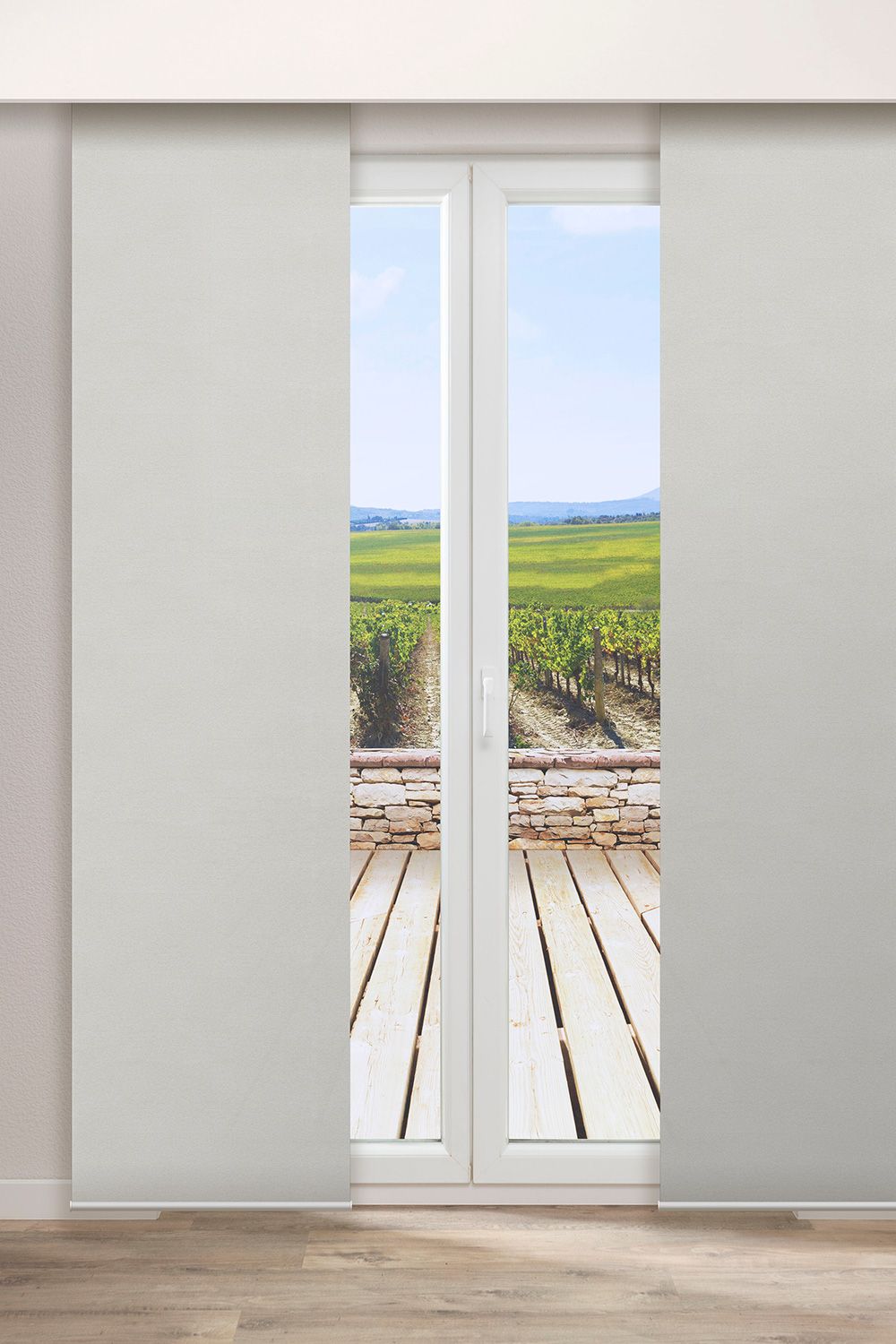 Eine geschmeidige, leicht schimmernde Oberfläche ist typisch für diesen individuell gefertigten Flächenvorhang. Sein hoher Reflexionsgrad resultiert aus der weiß beschichteten Rückseite des strukturierten Polyestergewebes. Dadurch bietet dieser Fensterschmuck effektiven Wärmeschutz, der im Sommer auch Ihrem Wintergarten zugutekommt. Zusätzlich gewährleistet das Dimout-Material sowohl tagsüber als auch nachts zuverlässige Privatsphäre und eine blendfreie Atmosphäre im Arbeitszimmer. Dank seiner Feuchtraumeignung eignet sich dieser Stoff ideal als Sicht- und Sonnenschutz in Badezimmern und Küchen. Dieser Dimout-Flächenvorhang ermöglicht es Ihnen, einfallendes Tageslicht weitgehend zu blockieren und behagliche Dunkelheit zu genießen, ohne dass es vollständig dunkel wird.