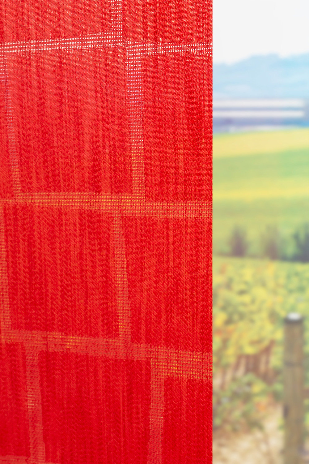 Mit diesem Flächenvorhang lassen sich unterschiedliche Dekorationsideen umsetzen. Durch das grafische Design in klassischen Farben haben Sie die Wahl, ob Sie Ihr Fenster mit einem Hingucker in einem ausdrucksstarken Ton oder einem stilvollen Fensterschmuck in einer leisen Nuance schmücken möchten. Das durchgängige Musterauf dem strukturierten Stoff erinnert ein bisschen an leicht versetzt aufeinander geschichtete Ziegelsteine. Dieser vielseitige Fensterbehang kann nicht nur Ihrem Wohnraum ein reizvolles Ambiente verleihen, er ist durch seine Feuchtraumeignung in Bad und Küche einsetzbar, schwer entflammbar und durch das Abwischen mit einem feuchten Tuch auch leicht zu reinigen. Dem transparenten Vorhang gelingt es, die Sonnenstrahlen von außen etwas milder wirken zu lassen und dabei den Raum in eine freundliche und einladende Atmosphäre zu tauchen. Dabei kann er am Bildschirmarbeitsplatz als Blendschutz dienen und das Arbeiten am PC entspannter gestalten.