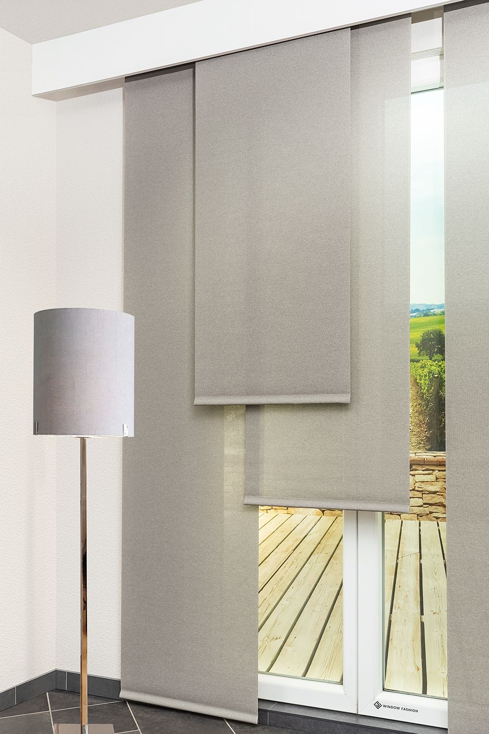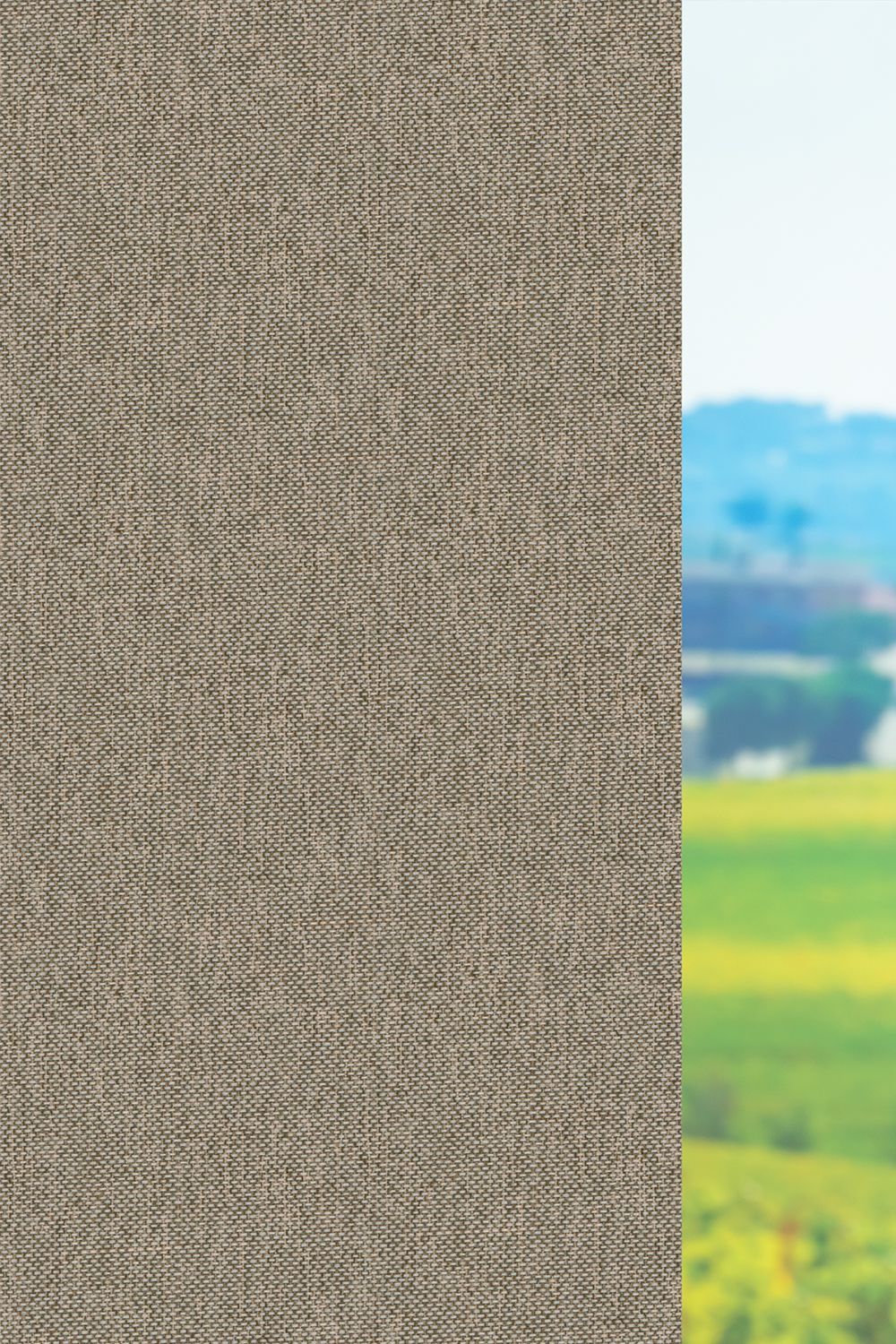 Dieser grob strukturierte, tweed-ähnliche Stoff mit rauer Oberfläche und griffiger Haptik besteht fast zur Hälfte aus recyceltem Polyester. Bei dem transparenten Gewebe sind Vorder- und Rückseite identisch. Selbst bei komplett zugezogenem Flächenvorhang genießen Sie durch den Lichteinfall weiterhin ein helles und offenes Ambiente. Außerdem muss noch einmal auf die rustikal wirkende Optik eingegangen werden, die einen natürlichen Charme versprüht und vor allem in den dunkleren, erdigen Farbtönen für Heimeligkeit und Gemütlichkeit sorgt. Um Spiegelungen und Reflexionen auf Monitoren jeglicher Art zu vermeiden, können Sie diesen vielseitigen Flächenvorhang ebenso verwenden. In Hellbraun kommt die natürliche Struktur mit hellen und dunklen Webfäden besonders gut heraus. Der milde, naturnahe Ton lässt das Ambiente ruhig und entspannt wirken. Behaglich und gemütlich wird es, wenn Sie noch weitere Erdfarben, naturbelassenes Holz, Wolle, Fell und Leder in den Raum integrieren. Warmes Rotorange und Rostrot wärmen das Ambiente zusammen mit Akzenten in Gold, Kupfer oder Messing auf. Tiefe Grüntöne, Glas und schwarzes Metall sorgen dagegen für einen moderneren Look.