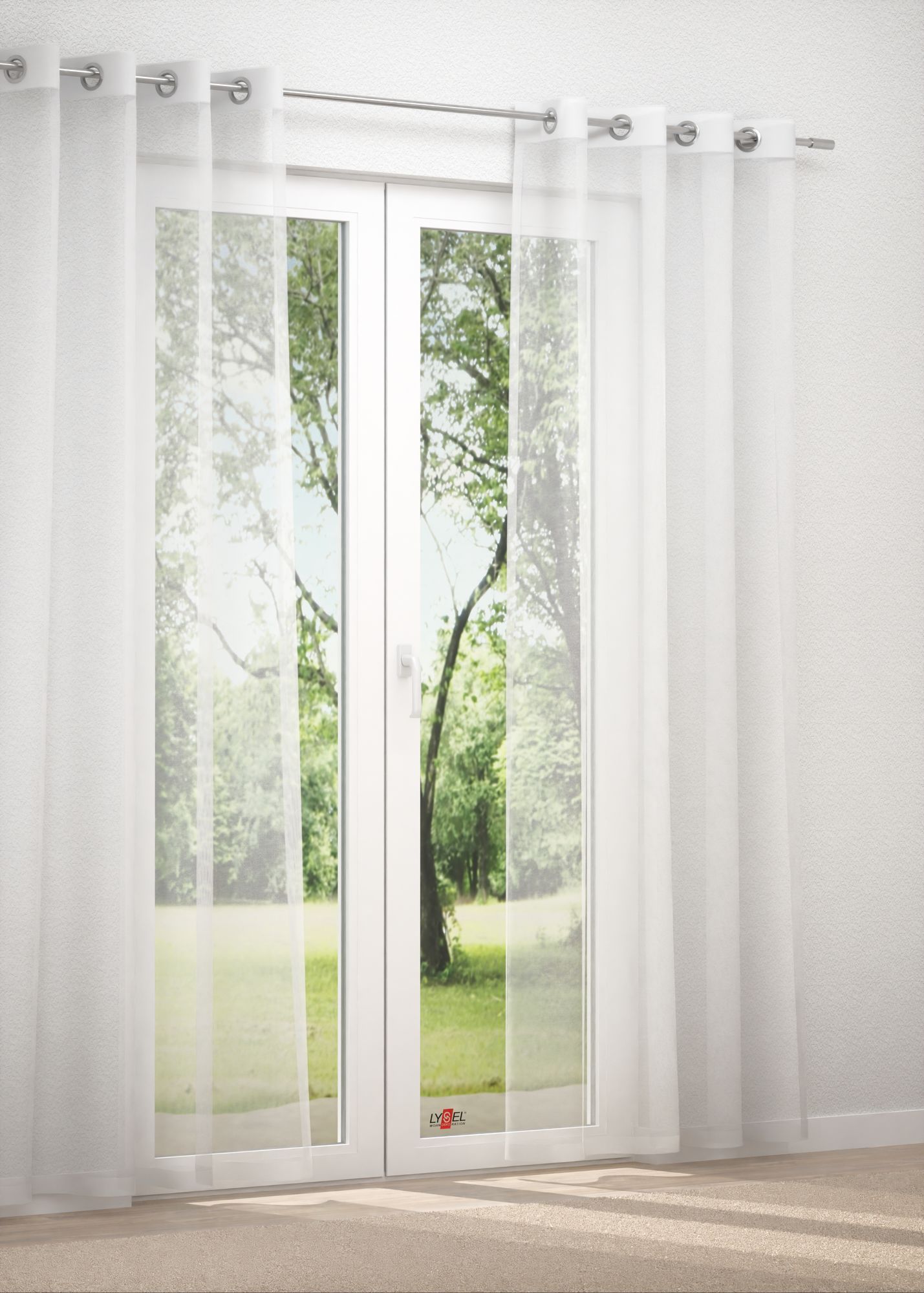 Reinweiß unterstreicht die luftige Wirkung des transparenten Stoffes und trägt zu einem offenen und freundlichen Raumcharakter bei. Der elegante und vielseitige Ton lässt sich derart variantenreich kombinieren wie kein zweiter, unter anderem mit warmen Erdfarben oder zarten Pastelltönen. Muster und knallige Farben kommen neben einem Accessoire in Weiß noch besser zur Geltung. Dunkle Töne bringen ausdrucksstarke Kontraste hervor.