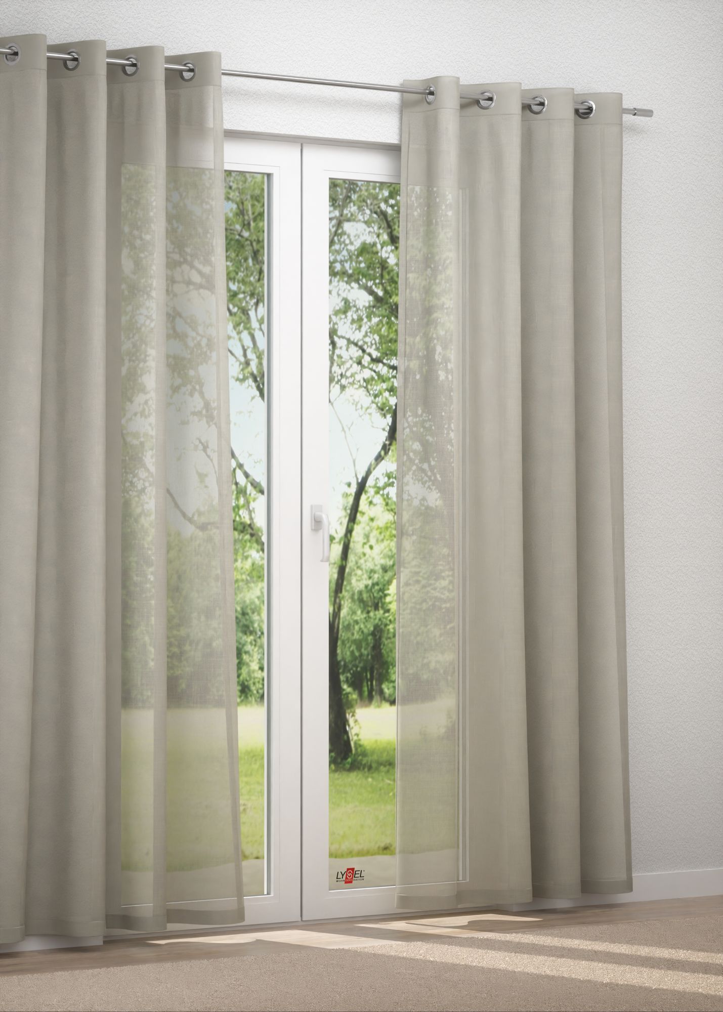 Der sanfte, natürliche Beigeton passt perfekt zur Leinenstruktur des durchsichtigen Stoffes. Dem Raum wird eine milde Wärme und eine freundliche, einladende Aura zuteil, die Sie mit verwandten Erdfarben und facettenreichen Grüntönen noch unterstreichen können. Ebenso können Sie Beige als geschmackvolle, elegante Ergänzung für Ihren individuellen Stil nutzen.