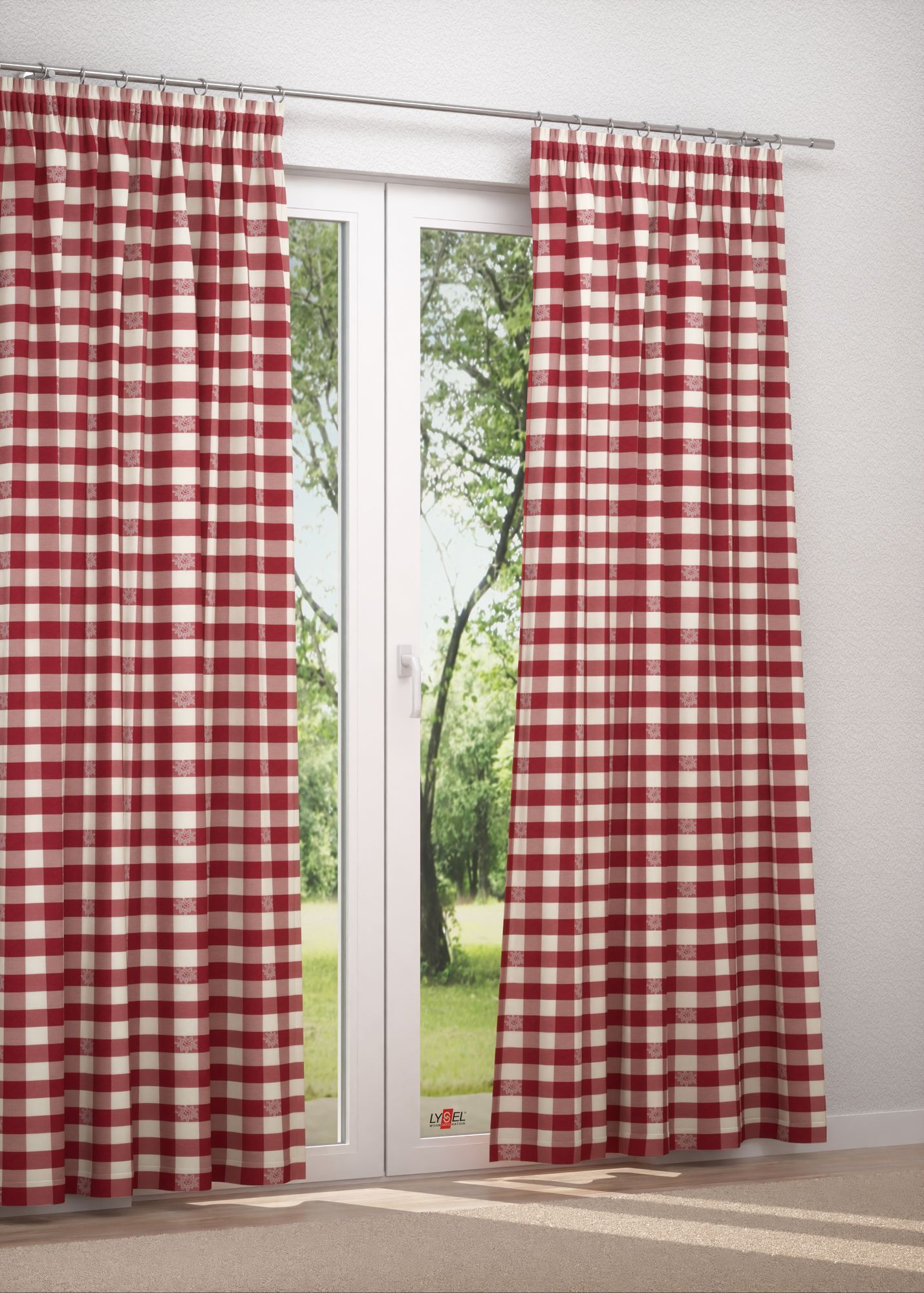 Das lebendige und kontraststarke Karomuster setzt sich hier aus edlem Weinrot und Weiß zusammen, was wiederum für eine freundliche, einladende Atmosphäre sorgt. Das warme, glutvolle Rot und das helle, frische Weiß ergänzen sich perfekt und ergeben eine wunderbare Harmonie. Naturmaterialien wie Leinen, Wolle und Holz sowie verschiedene Grüntöne setzen ein Accessoire aus diesem Stoff geschmackvoll in Szene.