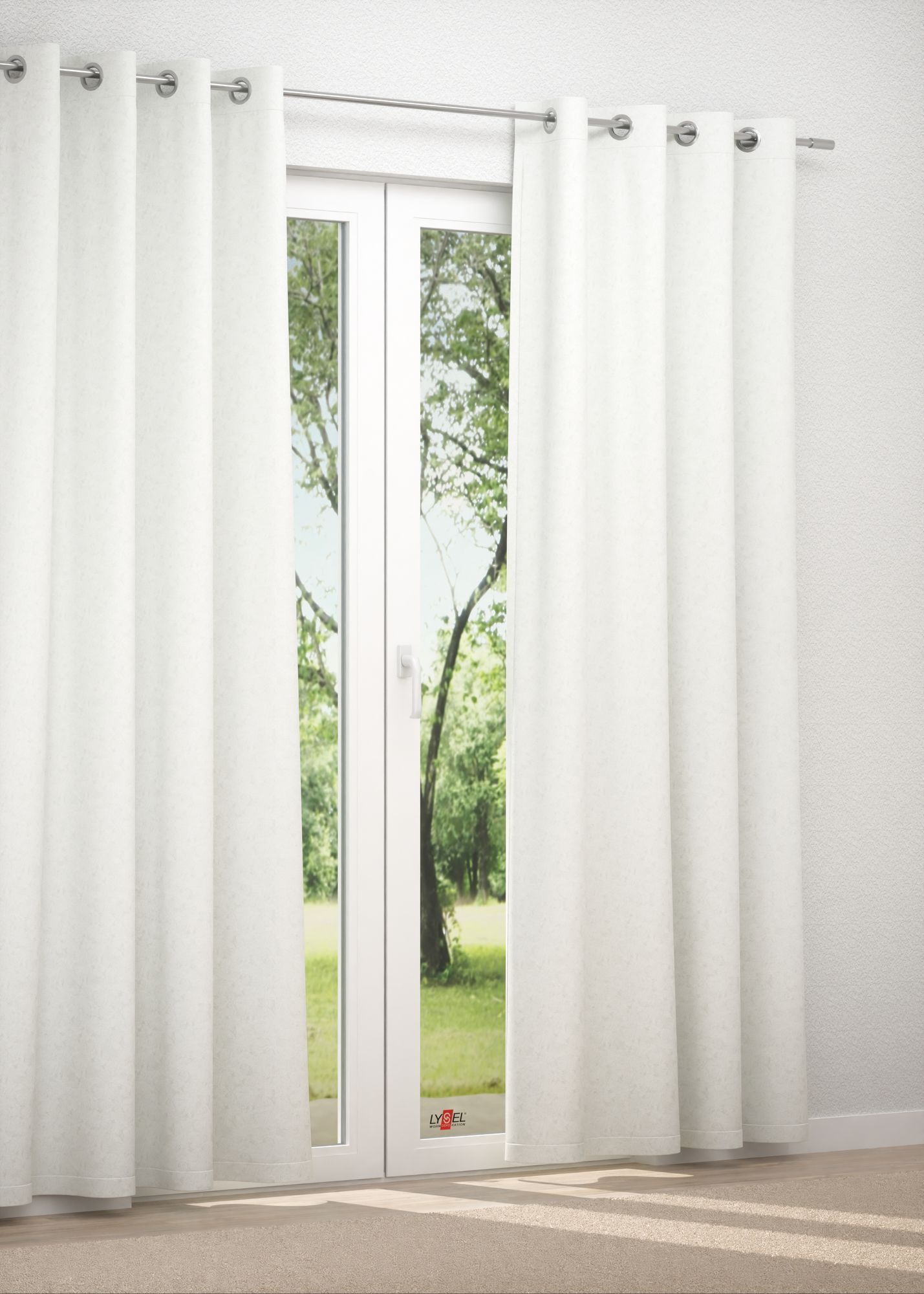 - Ein Ösenschal aus lichtdurchlässigem Stoff, 100% Polyester - individuell nach Ihren Wunschmaßen gefertigt.