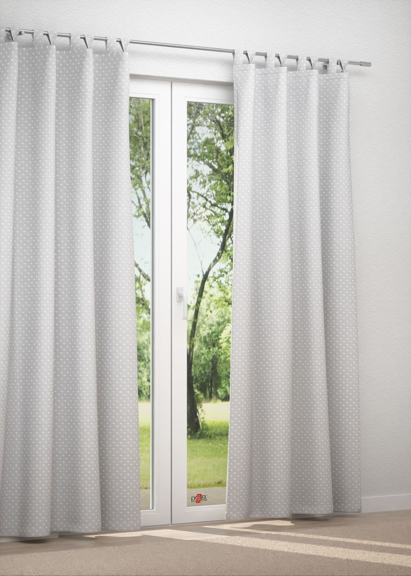 Mit einem Accessoire aus diesem Stoff können Sie Ihrem Interieur ein wohnliches und freundliches Flair verleihen. Das gleichmäßige Punktemuster lockert das Ambiente auf und verleiht ihm gleichermaßen eine moderne wie verspielte Note. Dabei strahlt die Anordnung der Punkte auch eine gewisse Ruhe und Harmonie aus. Je nach Farbvariante hebt sich das Muster mehr oder weniger stark vom unifarbenen Hintergrund ab, wirkt teilweise schimmernd. Das lichtdurchlässige, blickdichte Gewebe besteht fast zu gleichen Teilen aus Polyester und Polyacryl und lässt sich schonend bei 30 Grad im Schonwaschgang reinigen. An den Seiten und am Abschluss ist der Stoff gesäumt.