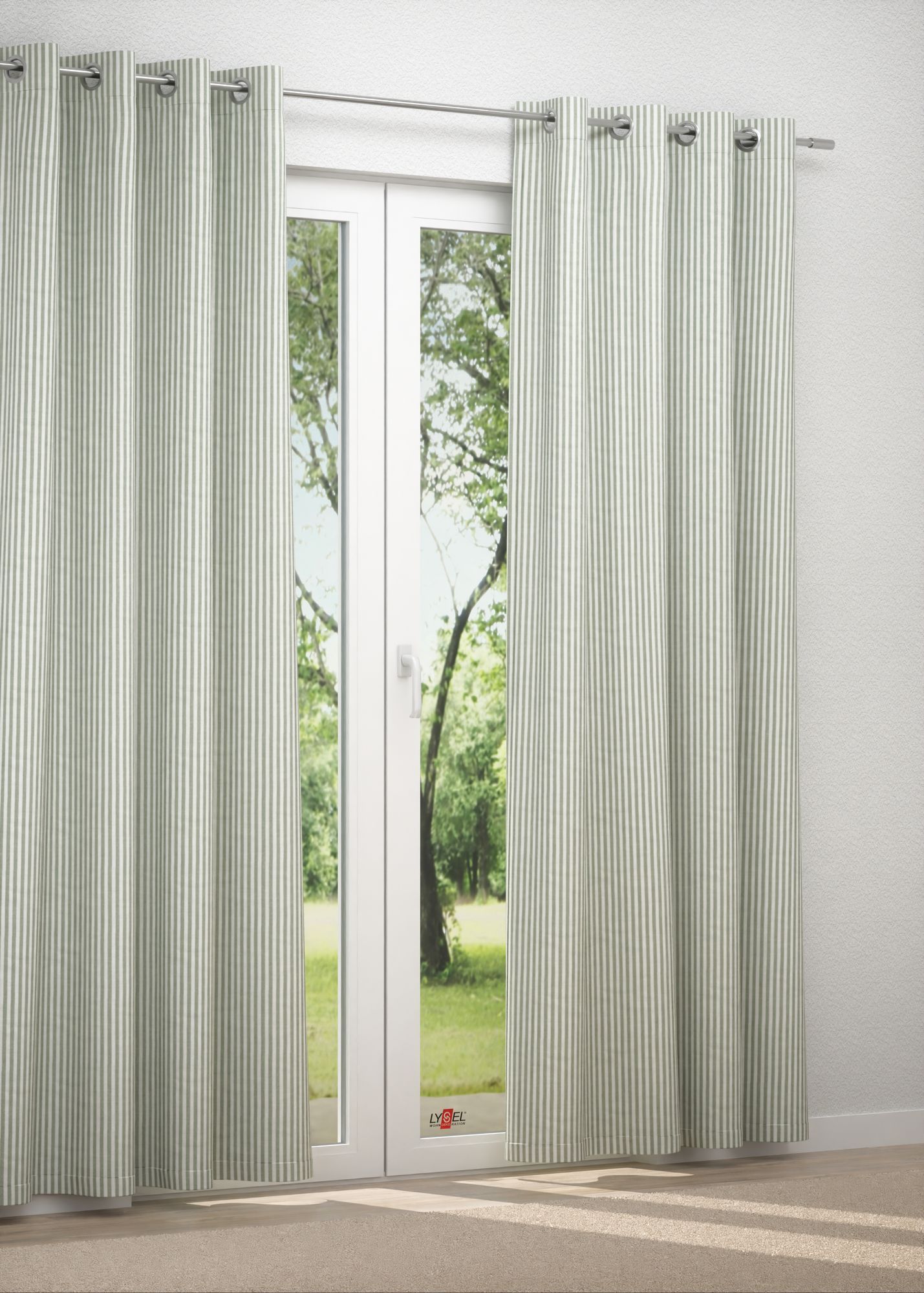 Der grün-weiß gestreifte Dekostoff sorgt durch die feinen Kontraste der Streifen für ein lebendiges, natürliches Flair. Der Grünton erinnert an eine Mischung aus Laub- und Olivgrün, versprüht Frische und Leichtigkeit, zugleich Entspannung und Wohlbefinden in perfekter Balance. Kombinieren Sie ein Accessoire aus diesem gestreiften Stoff mit hellem oder rötlichem Holz, kräftigen Orange- oder Violetttönen sowie milden Erdfarben. Accessoires in Gold, Kupfer und Messing setzen edle Akzente.