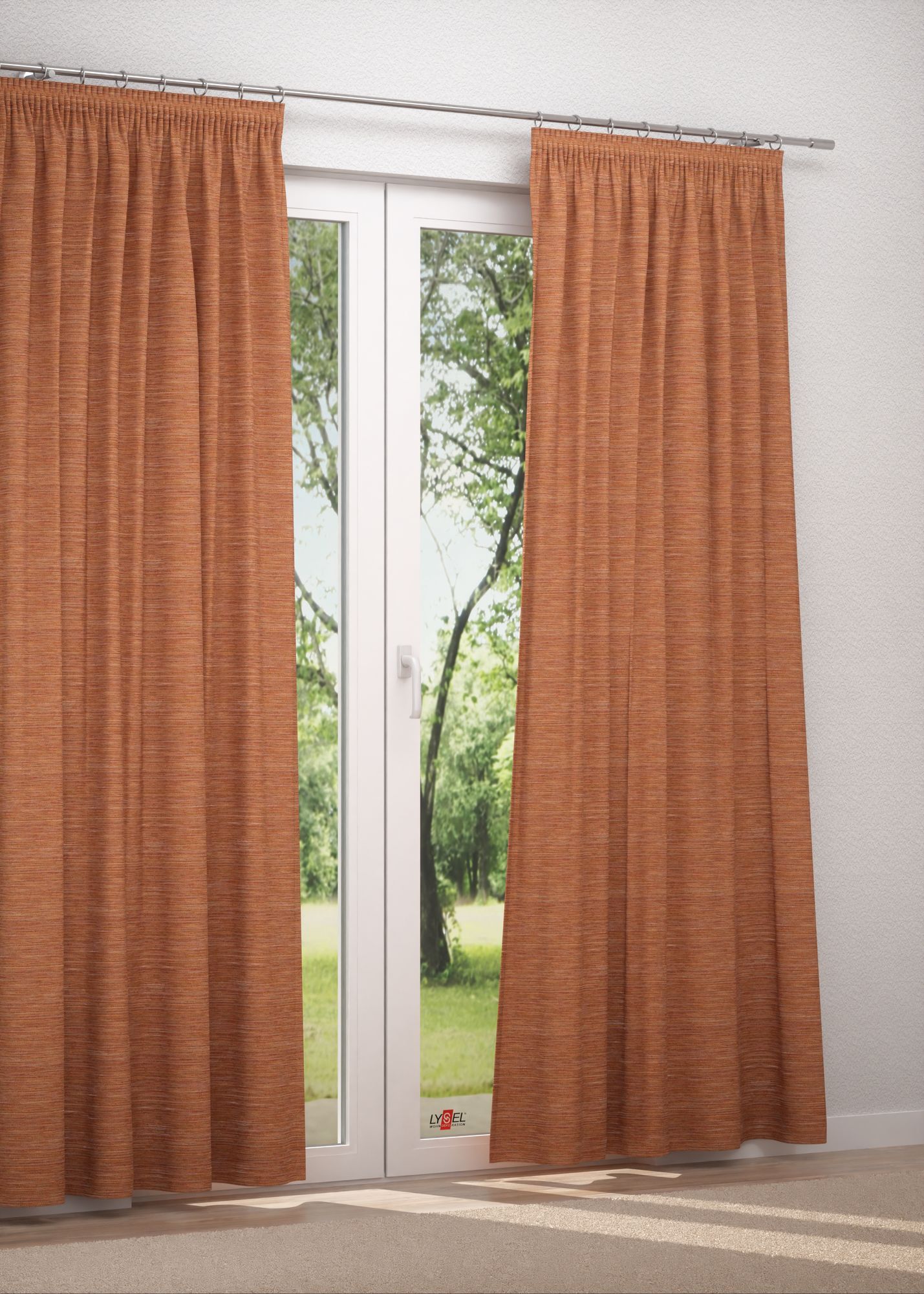 Durch die gestreifte Optik wirkt dieser Stoff lebendig und dynamisch. Die vitale Struktur wird durch unterschiedlich farbige Webfäden erzeugt und scheint außerdem leicht zu glänzen. Da sich die Abfolge der Webfäden stets wiederholt, entsteht der Eindruck, als wäre der Stoff dezent schraffiert. Mit unifarbenen Wandfarben, Deko-Elementen und Textilien lässt sich dieses Modell geschmackvoll in Szene setzen. Das lichtdurchlässige, blickdichte Polyestergewebe ist an den Seiten und am Abschluss gesäumt. Für die Reinigung des strukturierten Stoffes empfiehlt sich der Schonwaschgang bei 30 Grad.