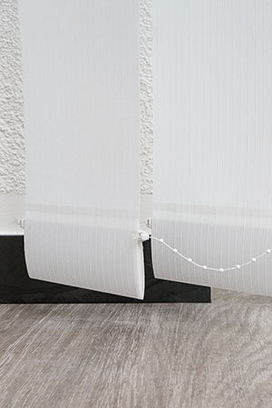 Unsere Lamellen der Kollektion Ballina sind der ideale Begleiter, wenn Sie einen zeitlosen und funktionellen Vorhang suchen. Die sehr dezente Grundstruktur des Stoffes erhält durch den aufgesetzten Streifen ein lockeres Flair. Dennoch bleiben die hellen Stoffe unaufgeregt und passen sich einem bestehenden Raumambiente sehr gut an. Das Lamellengewebe ist auf der Vorder- und Rückseite identisch und kann schnell und praktisch mit einem leicht angefeuchteten Tuch gereinigt werden. Die Lamellen Ballina sind lichtdurchlässig und bieten somit einen guten Sichtschutz am Tage. Am Abend sind, bei innenliegender Lichtquelle, von außen leichte Umrisse oder Silhouetten zu erkennen, wenn man sich in unmittelbarer Fensternähe befindet. Die freundlichen Farben, sowie die schicke Linienstruktur lassen einen Lamellenvorhang dieser Art nicht nur in Büros oder Praxen seinen Einsatz finden. Die Lamellenanlage Ballina wird auch gern im Privatbereich eingesetzt, vor allem wenn große Fensterflächen zu verschatten sind. Der signalweiße Stoff Ballina bietet die perfekte Grundlage, wenn Sie die Lamellenanlage in eine bestehende Einrichtung einbringen wollen oder wenn Sie besondere Akzente mit der Wandfarbe oder andere Accessoires setzen wollen. Mit einem weißen Vorhang sind die Gestaltungsmöglichkeiten besonders vielseitig. Eine kleine Auflockerung bietet dieser Stoff durch die aufgesetzte Linienstruktur, welche aber dennoch sehr dezent wirkt. Lassen Sie sich von unserem weißen Lamellenstoff Ballina inspirieren und gestalten Ihre Räume genau so, wie es Ihnen beliebt.