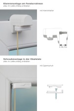 Bitte beachten Sie, dass die Klemmmontage nur bei Kunststofffenstern geeignet ist.