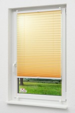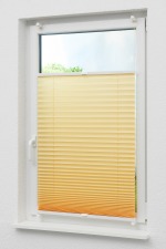 Fast orange erscheint der hellgelbe Stoff, wenn sich die Plisseefalten eng aneinanderschmiegen. Nutzen Sie diesen Farbverlauf doch aktiv in Ihrer Raumgestaltung.