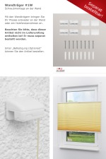 Schrauben oder Klemmen - zumindest an Kunststofffenstern haben Sie mit diesem Plissee die Wahl. Für beide Varianten ist Montagematerial im Lieferumfang enthalten. Das Plissee lässt sich am Ende Frei vor der Fensterfläche verschieben. Dazu werden die Spannschnüre bei der Montage auf die richtige Höhe angepasst. Bestellen Sie das Plissee also etwas länger, als Ihr Fenster hoch ist. Sollte auch die Breite nicht passen, kann diese mit etwas Handwerkstalent um bis zu 15 cm verringert werden. Am Ende haben Sie eine günstige Alternative zur Maßanfertigung. Der Plisseestoff ist lichtdurchlässig und hell und dekoriert ohne die Fensterszene zu dominieren. Weiterhin ist separat bestellbares Zubehör erhältlich: möchten Sie das Plissee lieber an der Wand festschrauben, dann können Sie dies mit den Wandträgern.