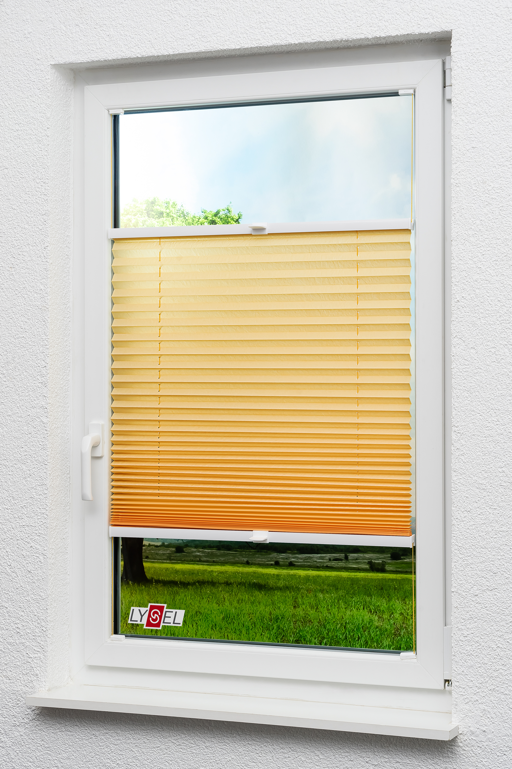 Diese Variante des Plissees bietet Apricot als Farbe. Der Ton wirkt sanft wie natürlich und ist mit sanft-entspannten Einrichtungsstilen gut kombinierbar.
