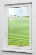 Diese Variante des Plissees bietet Maigrün als Farbe. Der Ton wirkt natürlich-frisch und ist mit jungen Einrichtungsstilen gut kombinierbar.