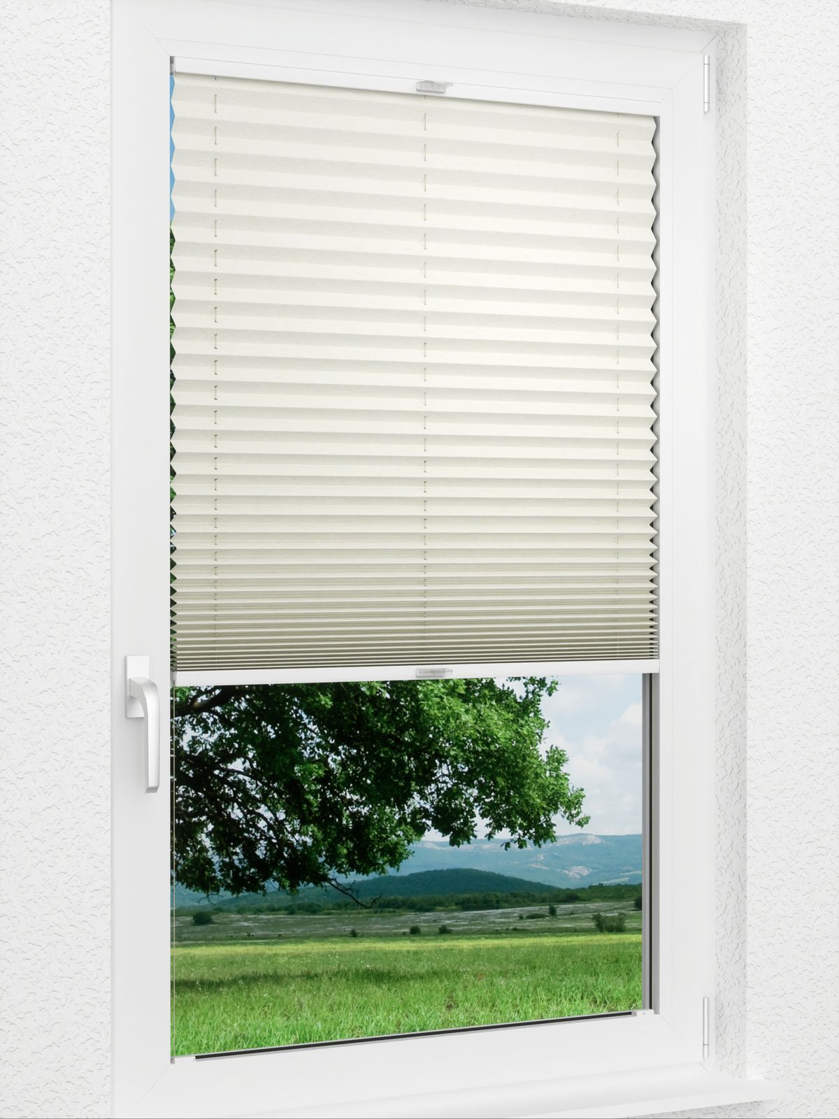 Mit der feinen Crush-Struktur der Oberfläche und der Perlreflex beschichteten Rückseite ist dieses Plissee nicht nur eine dezente Fensterdeko, sondern überzeugt vor allem durch seine vielfältigen anderen Einsatzmöglichkeiten. So erlaubt das schwer entflammbare Gewebe die Verwendung in öffentlichen Objekten, in Feuchträumen wie Bad und Küche und dient noch dazu tagsüber wie abends als zuverlässiger Sichtschutz. Das lichtdurchlässige Gewebe gestaltet das Ambiente trotzdem hell und freundlich, selbst dann, wenn der Behang komplett geschlossen ist. Bei Bedarf reinigen Sie das Plissee durch feuchtes Abwischen oder die schonende Handwäsche bei 30 Grad. Dezent und unaufgeregt wirkt das Plissee in Creme am Fenster. Der ruhige Naturton verleiht dem Ambiente eine milde Wohnlichkeit. Da hat Creme gegenüber reinem Weiß einen Vorteil, dabei lässt es sich genauso vielfältig kombinieren und als Basis oder Umrahmung für das bereits bestehende Interieur nutzen.