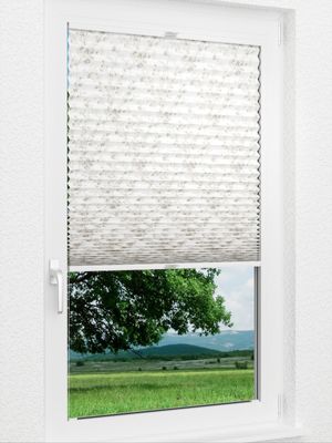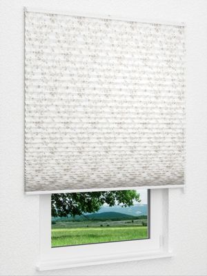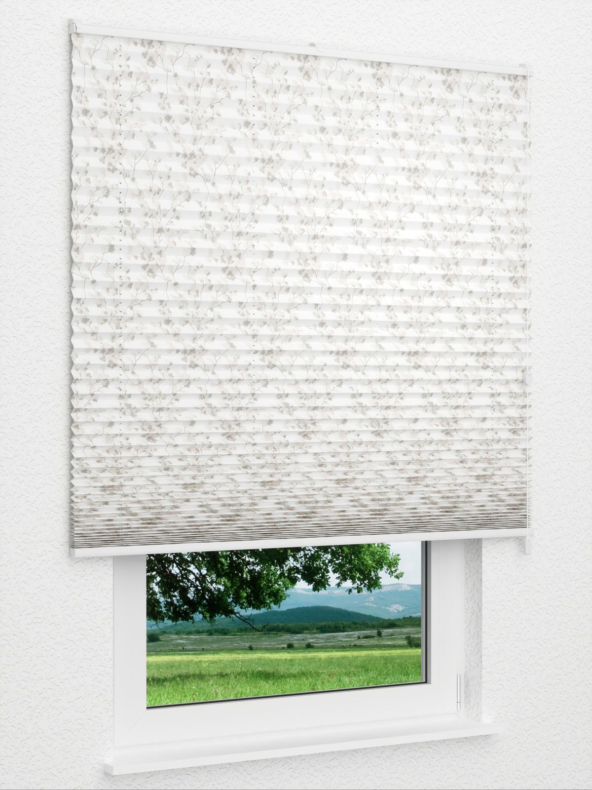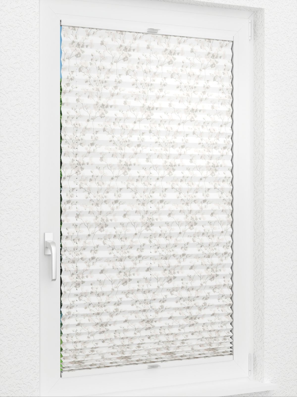 Der griffige, fein strukturierte Polyesterstoff, aus welchem dieses Plissee besteht, präsentiert ein florales Design, das sich aus ineinander übergehenden Blätterranken in verschiedenen pastelligen Farben zusammensetzt und noch dazu durch glitzernde Elemente aufgewertet wird. Mit diesem halbtransparenten Plissee am Fenster wird der Raum von Licht durchflutet, allzu intensive Sonnenstrahlen wirken jedoch abgemildert und gedämpft. Tagsüber bleiben Sie vor neugierigen Blicken bewahrt. In Bad und Küche stellt das vielseitige Plissee seine Feuchtraumeignung unter Beweis. Hohe Wärme und Luftfeuchtigkeit in Form von Dampf und Dunst machen dem Polyestergewebe überhaupt nichts aus. Daher lässt es sich auch mit einem feuchten Tuch behandeln und per Hand waschen. Die Blüten bewegen sich in feinen Rosétönen, Weiß und glitzerndem Bronze über den hellgrauen Stoff. Insgesamt wirkt das Design hell und freundlich, das Design verkörpert eine frühlingshafte Zartheit und Eleganz. Mit weiteren Abstufungen von Rosé, frischem Grün und zeitlosem Grau lässt sich das Plissee mit Blumen wunderbar kombinieren.