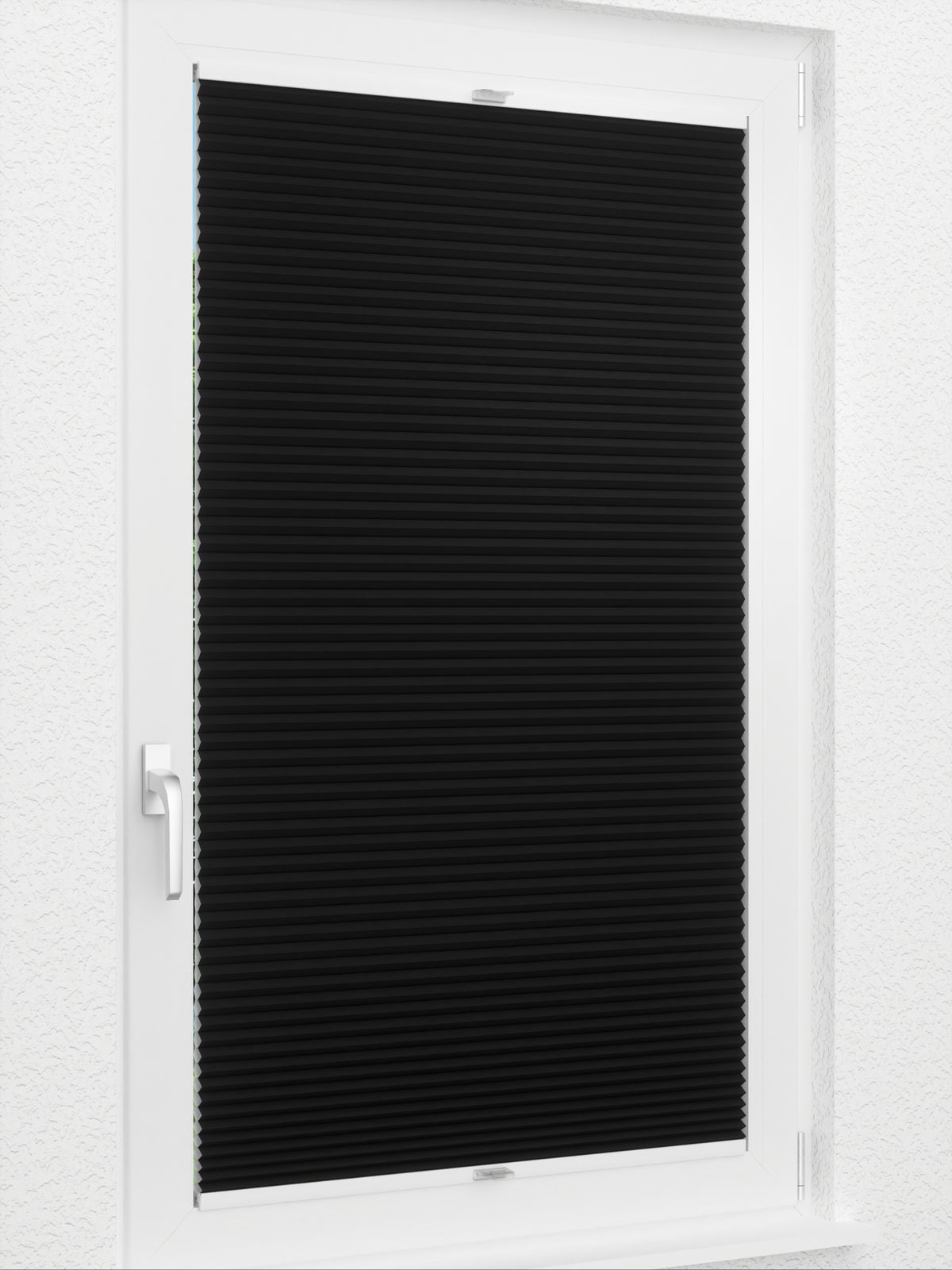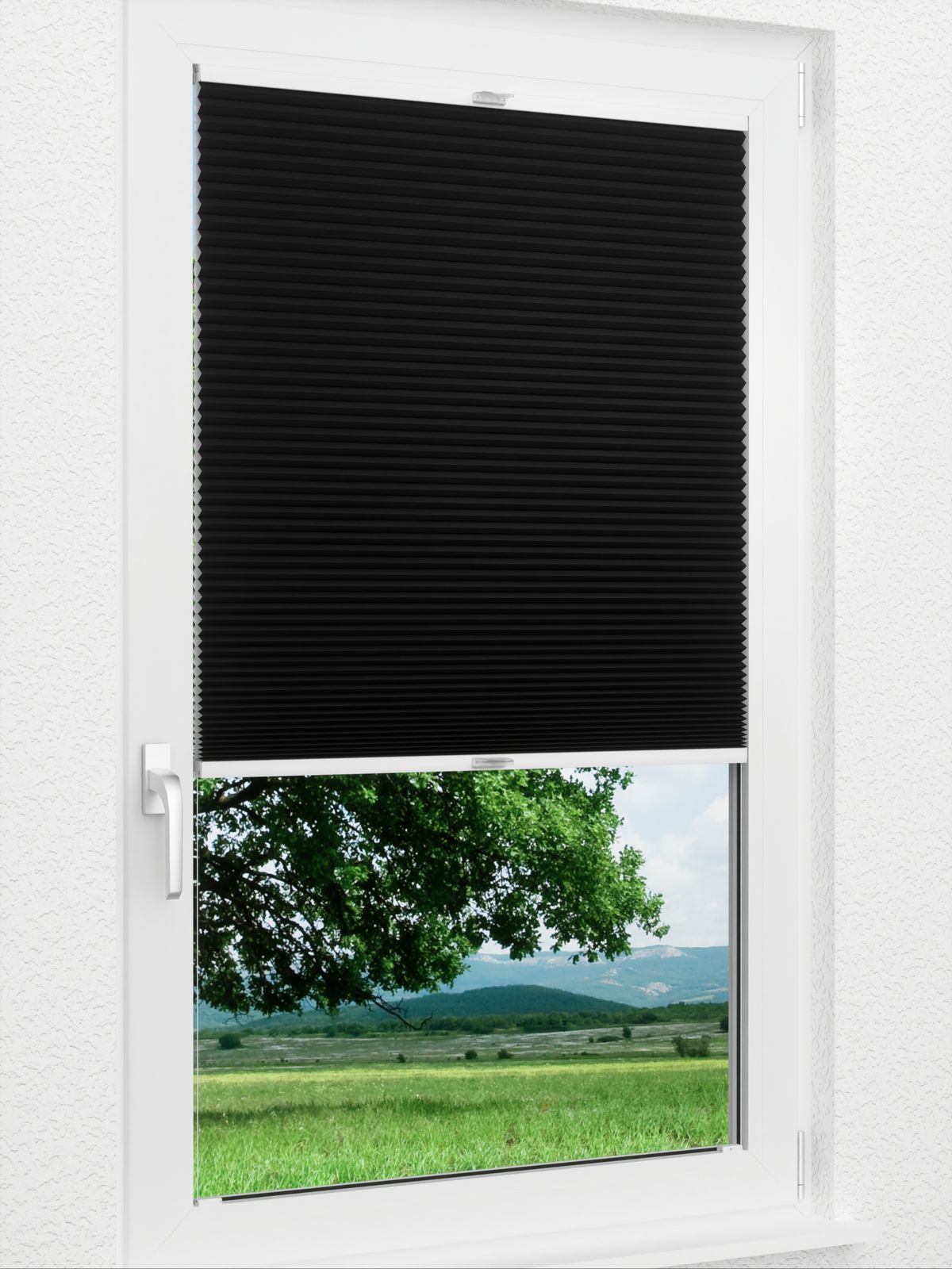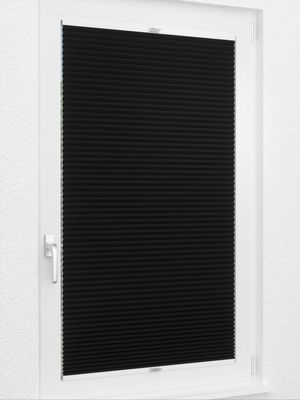 Mit diesem attraktiven Wabenplissee bekommen Sie ein unifarbenes, lichtdurchlässiges Modell, welches sich in jeden Stil einfügen lässt. Das Polyestergewebe erlaubt milden Lichteinfall, gleichzeitig haben Sie mit diesem Wabenplissee am Fenster tagsüber wie nachts einen zuverlässigen Sichtschutz und Ihre Privatsphäre bleibt stets gewahrt. Zusätzlich sorgt der Aufbau aus Luftkammern und die weiße Rückseite dafür, dass das Wabenplissee einen guten Wärmeschutz bietet. Ein ausdrucksstarkes und auffälliges Fensteraccessoire präsentiert sich mit diesem Plissee in Schwarz. Mit seiner markanten, geheimnisvollen Aura zieht es den Betrachter in den Bann. Für Kombinationen mit hellen Farben wie Reinweiß im Zusammenspiel mit Abstufungen von Beige oder Grau bietet es sich besonders an. Nicht minder spannend ist die Verbindung mit zartem Pastell; ein reizvolles, individuelles Flair entsteht mit kräftigen Farben, die sich mit dem Schwarz messen und ihre schillernde Seite zeigen.