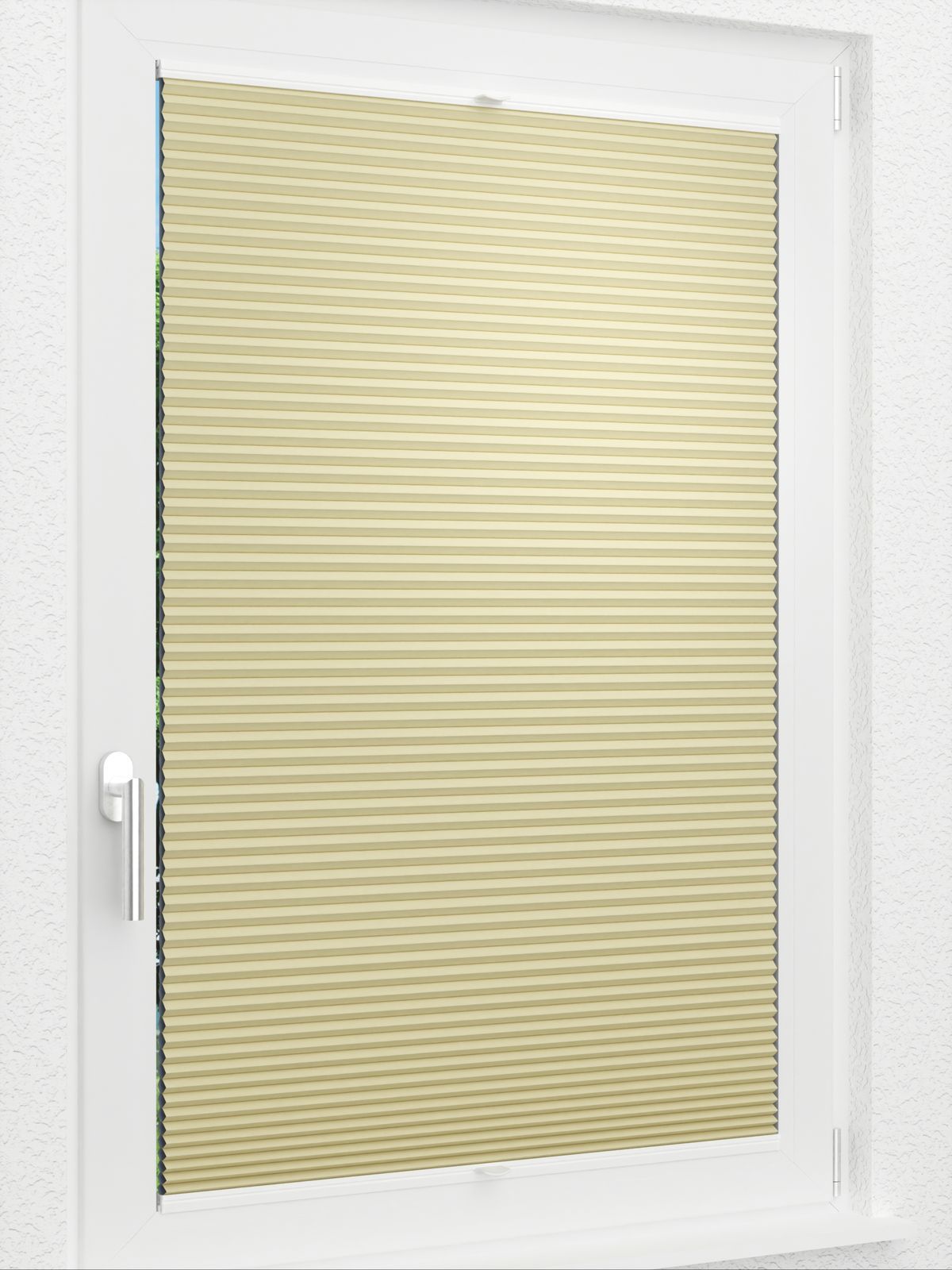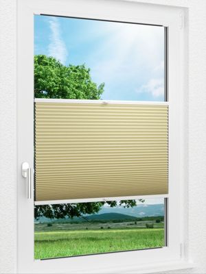 Dieses Wabenplissee kann mit vielen Vorzügen punkten. Zum einen fügt es sich durch die dezente Struktur und die ansonsten unifarbene Gestaltung stimmig in den Raum ein und kann verschiedene Stile perfekt ergänzen. Die Aluminiumbeschichtung innen und die weiße Rückseite bedingen den starken Wärmeschutz des Plissees. Selbst an heißen Tagen bleibt das Raumklima auf einem konstanten Niveau. Im Wintergarten kann das Hitzeschutzplissee ebenfalls eingesetzt werden. Suchen Sie nach einer Verdunkelung für Ihre Räume oder nach einem Blendschutz, nehmen Sie dieses Wabenplissee aus abdunkelndem Gewebe, das stets für eine entspannte Atmosphäre sorgt und durch den Sichtschutz auch neugierige Blicke fernhält. Natürlich, mild und freundlich präsentiert sich das Wabenplissee in Beige und dient zudem als geschmackvoller Begleiter für andere Farben. Neben verwandten Naturtönen passen satte Rottöne, dunkles Blau sowie Moos-, Tannen- und Kieferngrün besonders gut dazu. Mit Anthrazit entstehen ebenfalls ausdrucksstarke, moderne Kontraste.