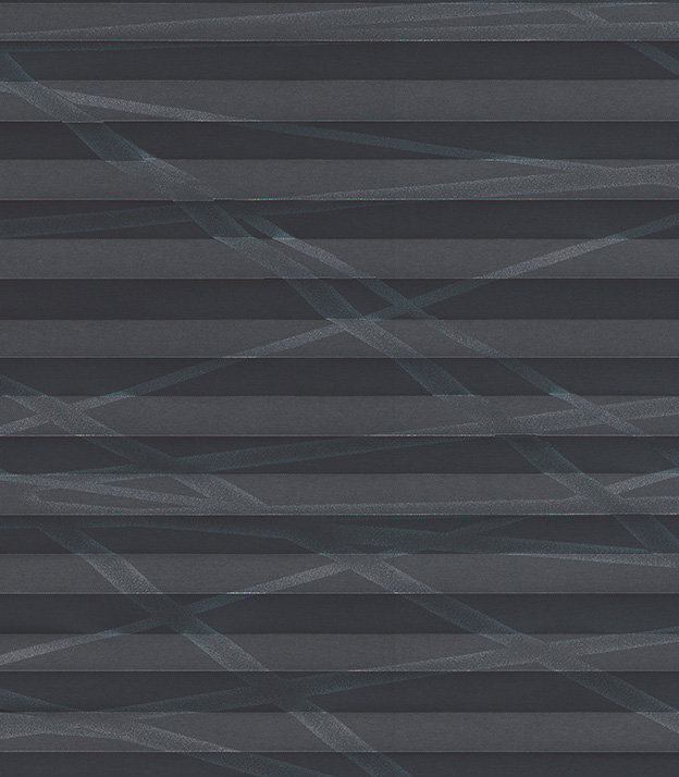 Auf dem hochwertigen Dimout-Plissee in geheimnisvoll-dunklem Schwarz präsentieren sich in unregelmäßiger Anordnung sich überschneidende Stäbe, die silberfarben schattiert sind und dadurch dem Fensterschmuck einen edlen Glanz und eine elegante Optik verleihen. Insgesamt erinnert das Design an den Raum durchkreuzende Laserstrahlen, die eine Verspieltheit ebenso ausdrücken wie eine gewisse Spannung und Dynamik. Während das Polyestergewebe vor blendenden Sonnenstrahlen und, als Sichtschutz, vor neugierigen Blicken von außen schützt, hüllt es besonders Räume wie Schlaf- und Kinderzimmer allmählich in eine friedliche und wohlig-gemütliche Dunkelheit; erzeugt es eine ruhevolle und behagliche Atmosphäre, die zum Entspannen und Träumen einlädt. Während der Faltstore damit auch die Mittagsruhe unabhängig von der Tageszeit ermöglicht, lässt er nur einen sehr geringen Teil des Lichts hindurch. Bedingt durch seine hohen reflektierenden Eigenschaften trägt der Stoff als guter Wärmeschutz zu einem angenehmen Raumklima bei. Wenn es nach dem Relaxen wieder weitergehen soll, können Sie den stilvollen Fensterschmuck auch als Blendschutz für den Bildschirmarbeitsplatz nutzen. Neben den dekorativen und praktischen Eigenschaften überzeugt dieses Plissee auch mit seiner einfachen Reinigung. So können Sie es schonend bei 30 Grad in einer milden Seifenlauge auswaschen.