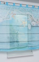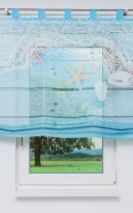 Dieses bunt und fröhlich wirkende Raffrollo besticht vor allem durch das maritime Design. Somit ist es vor allem für Bad- und Kinderzimmer eine tolle Fensterdeko. Das lichtdurchlässige Polyestergewebe zeigt verschiedene Muscheln und Seesterne, sogar ein Fischernetz, alles eingefangen in eine bunte Unterwasserwelt. Im Hintergrund scheint sich ein versunkenes Boot zu befinden, angedeutet wird es durch quer angeordnete Holzbretter. Vor neugierigen Blicken sind Sie stets geschützt. Dennoch kommt viel mildes Licht in den Raum, das Ambiente wirkt angenehm hell und freundlich. Mit den großen Schlaufen fädeln Sie den Behang einfach auf eine Gardinen- oder Klemmstange auf. Zur Bedienung nutzen Sie die rechtsseitig angebrachte Zugschnur. Verändern Sie mit der Raffung auch die Höhe und den Lichteinfall und zaubern Sie stets eine Atmosphäre, wie Sie Ihnen gefällt. Der Stoff ist ringsum gesäumt und kann schonend bei 30 Grad gewaschen werden.