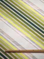 Klassisch, abwechslungsreich und äußerst schmuckvoll. Dieser Dekostoff vereint verschiedene Stilelemente, die sich in moderne wie in gemütlich-rustikale Einrichtungen integrieren lassen. Das Gewebe wird von farbigen Breitstreifen in unterschiedlichen Schattierungen durchbrochen, es entsteht ein harmonischer Ton-in-Ton-Effekt, der sanfte Übergänge schafft. Für ein luftig-leichtes Erscheinungsbild sorgen die hellen Breitstreifen, die von schmalen Streifen mit einer aufgeworfenen Webkante eingefasst werden. Die Halbtransparenz des Polyesters trägt zu einer hellen und freundlichen Atmosphäre bei, lässt kleine Räume optisch größer und offener wirken. Da der Stoff am Abschluss und den Seiten gesäumt ist, sind damit eine Menge kreativer Ideen umsetzbar, entweder als dekoratives Einzelstück oder Ergänzung zu einem bereits bestehenden Wohnkonzept. Verschmutzungen lassen sich schonend mit der Waschmaschine bei 30°C beseitigen.