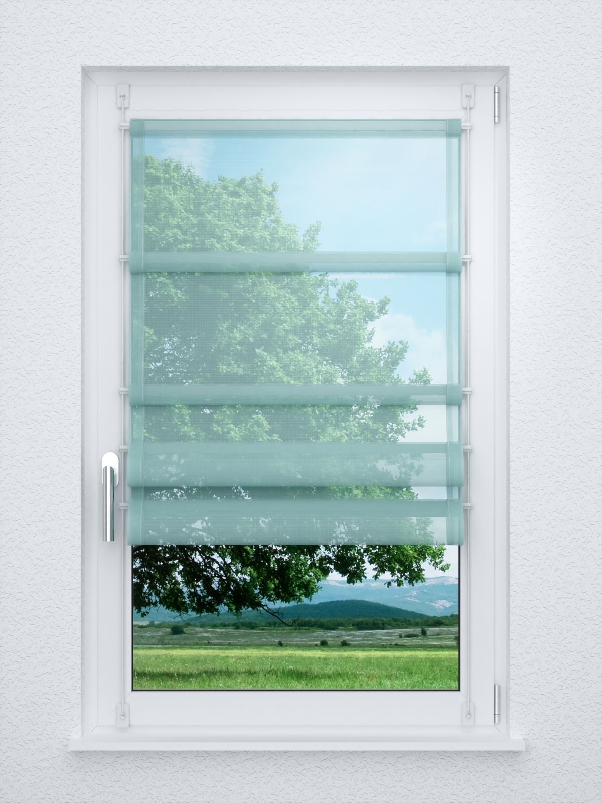 - Ein Raffrollo smart aus transparentem Stoff, 100% Polyester - individuell nach Ihren Wunschmaßen gefertigt. Geliefert wird der Artikel inklusive Befestigungsmaterial.