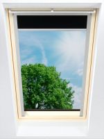 Verdunkeln Sie mit diesem Dachfensterrollo zuverlässig Ihre Zimmer. Zudem reguliert die reflektierende Außenseite das Raumklima im Sommer. Auftreffendes Sonnenlicht wird so nicht in Wärme umgewandelt, die den Raum erhitzt, sondern direkt wieder nach außen reflektiert. Zur passgenauen Integration stehen verschiedene Größen für gängige Velux Dachfenster Modelle bereit. Seitliche Führungsschienen und Rolloträger werden für die Montage im Fensterpfalz verschraubt. Dabei sollten Sie unbedingt beachten, dass eventuell vorhandene Original-Veluxträger vorher entfernt werden! Alternative: Die Träger unseres Comfortmodells aus der Maßanfertigung sind mit Pick & Click-Trägern von Velux kombinierbar. In zeitlosem Silber ist die Profilfarbe des Dachfensterrollos gehalten. Wir bitten Sie trotzdem, im Zweifel vor Ihrer Bestellung Kontakt mit uns aufzunehmen. Die abgebildete Variante kommt in klassischem Schwarz. Die neutrale Farbe verleiht dem Ambiente eine edle und zugleich aufgeräumte Note. Sie eignet sich gut zum Kombinieren mit leuchtenden Umgebungsfarben, welche sie aufnehmen kann.