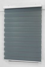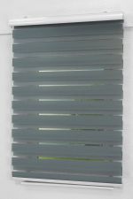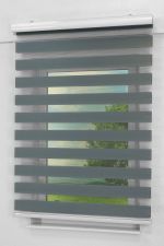 Das Doppelrollo erhält seinen Namen durch die beiden Lagen gestreiften Stoffes, die hintereinander vor dem Fenster liegen. Die Streifen besitzen eine Breite von 7,5 cm und sind abwechselnd undurchsichtig und transparent. Sie werden beim Bedienen so hintereinander gelegt, dass sie sich abwechselnd ergänzen, wenn die Sichtlinie unterbrochen werden soll, oder aber übereinander gelegt werden, wenn Licht und Sicht wieder freigegeben werden sollen. Die Bedienung geschieht über eine links oder rechts integrierte Bedienkette. Mit ihr werden die Streifen gegeneinander verschoben oder die Gesamtfläche aufgezogen. Diese Methode geht besonders leicht von der Hand. Vor allem Orte an denen möglichst schnell Licht- oder Sichtschutz zur Verfügung stehen muss – wie etwa Bäder – profitieren. Das Montageprofil mit Blende, auf welchem Rollowelle, Stoff und Mechanik sitzen, kann ganz einfach an die Wand oder unter die Decke montiert werden. Das Doppelrollo bietet eine moderne Erscheinung, die durch seine Funktionsweise gekonnt unterstützt wird.